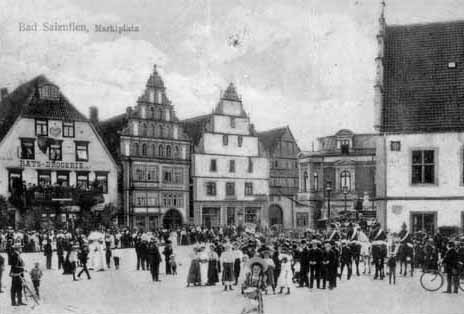 Der Bereich um die Ritterstraße – zwischen Markt und Hafermarkt – zählt zu den ältesten Siedlungskernen der Stadt. Nachgewiesen ist hier eine Wohnbebauung seit dem 14. Jh. Es gab zwar schon Anfang des 11. Jh. eine Saline und sicher auch Wohnhäuser für die Menschen, die damals lebten, aber wo ihre Bauten standen, kann nur vermutet werden. Die Gegend um die Ritterstraße war bevorzugtes Baugebiet, weil sie hochwassergeschützt war und festen Grund bot im Gegensatz zum sandigen und morastigen Salzetal.